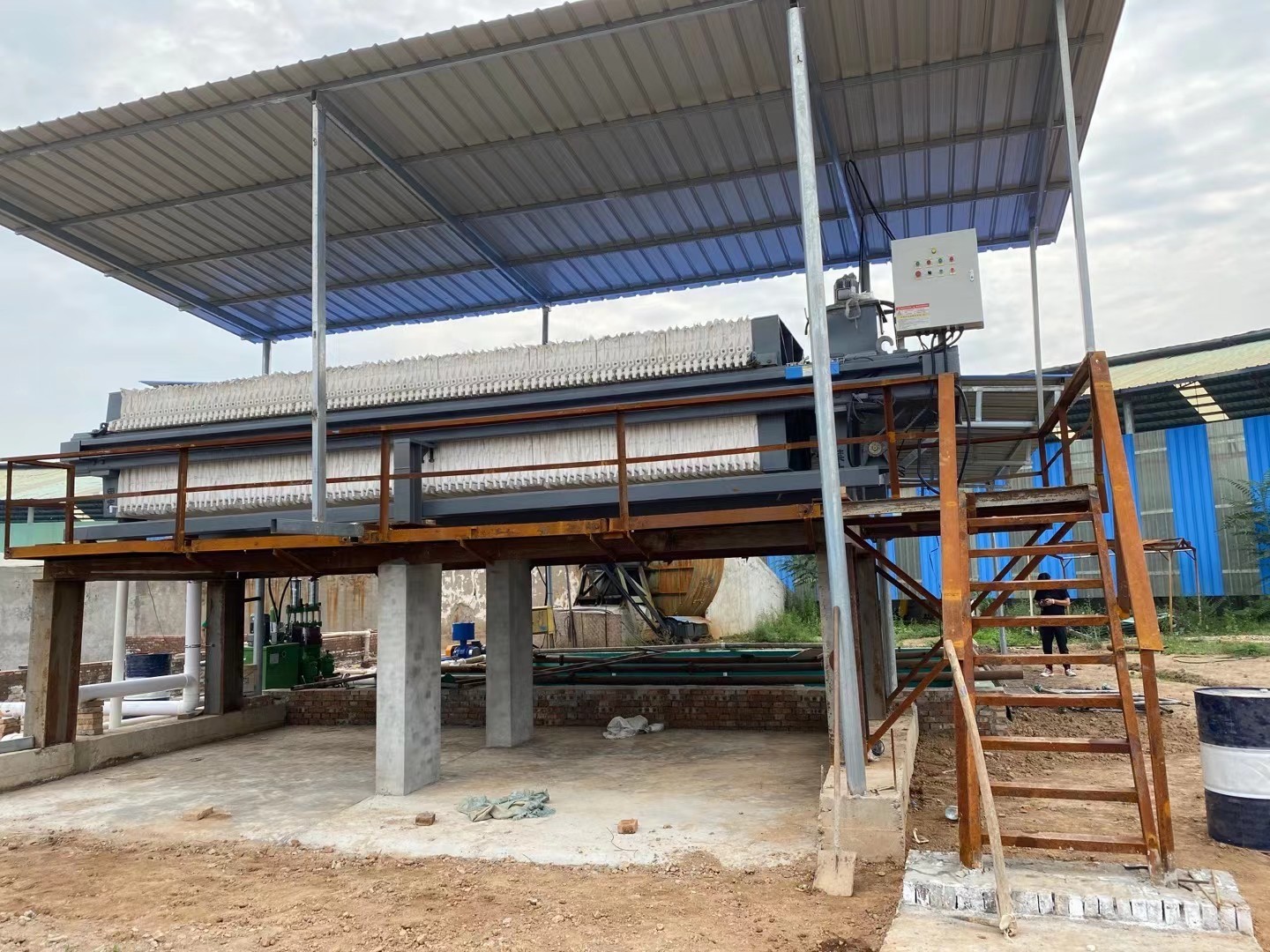 1.濾板數(shù)量少于規(guī)定數(shù)量時,禁止啟動壓濾機,以免損壞機器零件。進料前檢查濾板的排列,濾布不能折疊,以防大量泄漏;卸餅后,濾板必須壓緊,排列整齊。
